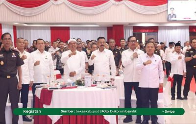 Bupati Bekasi Ade Kuswara Kunang ikut serta dalam penandatanganan tersebut menjadi sekaligus tuan rumah kegiatan.